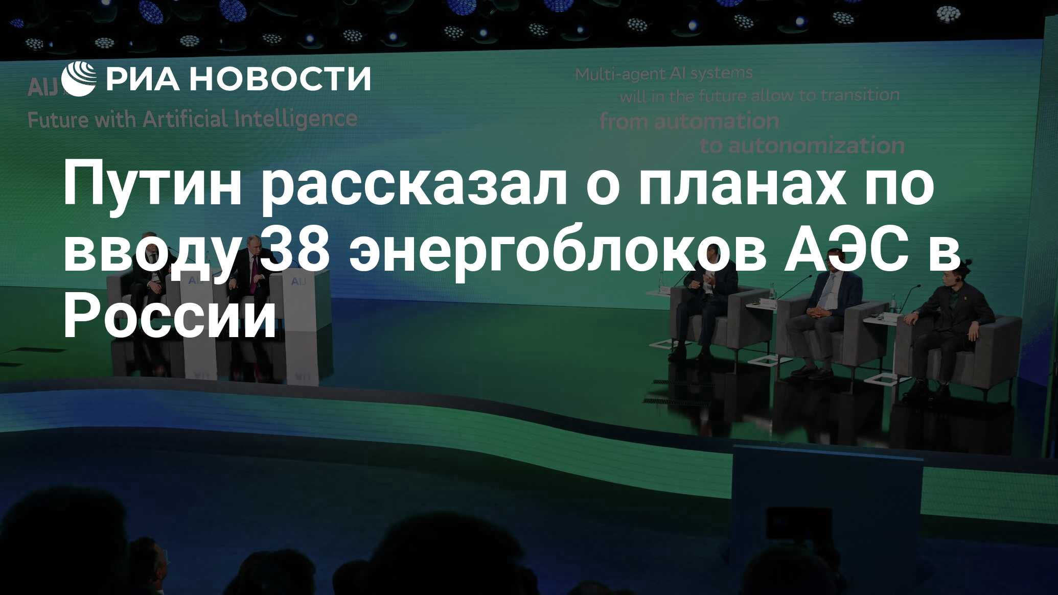 «Что касается перспективных решений, то менее чем за два десятилетия, прежде всего на Урале, в Сибири и на Дальнем Востоке планируем построить 38 атомных энергоблоков. Их суммарная мощность будет практически равна мощности всей действующей сейчас атомной генерации», — сказал Путин в ходе конференции «Путешествие в мир искусственного интеллекта».